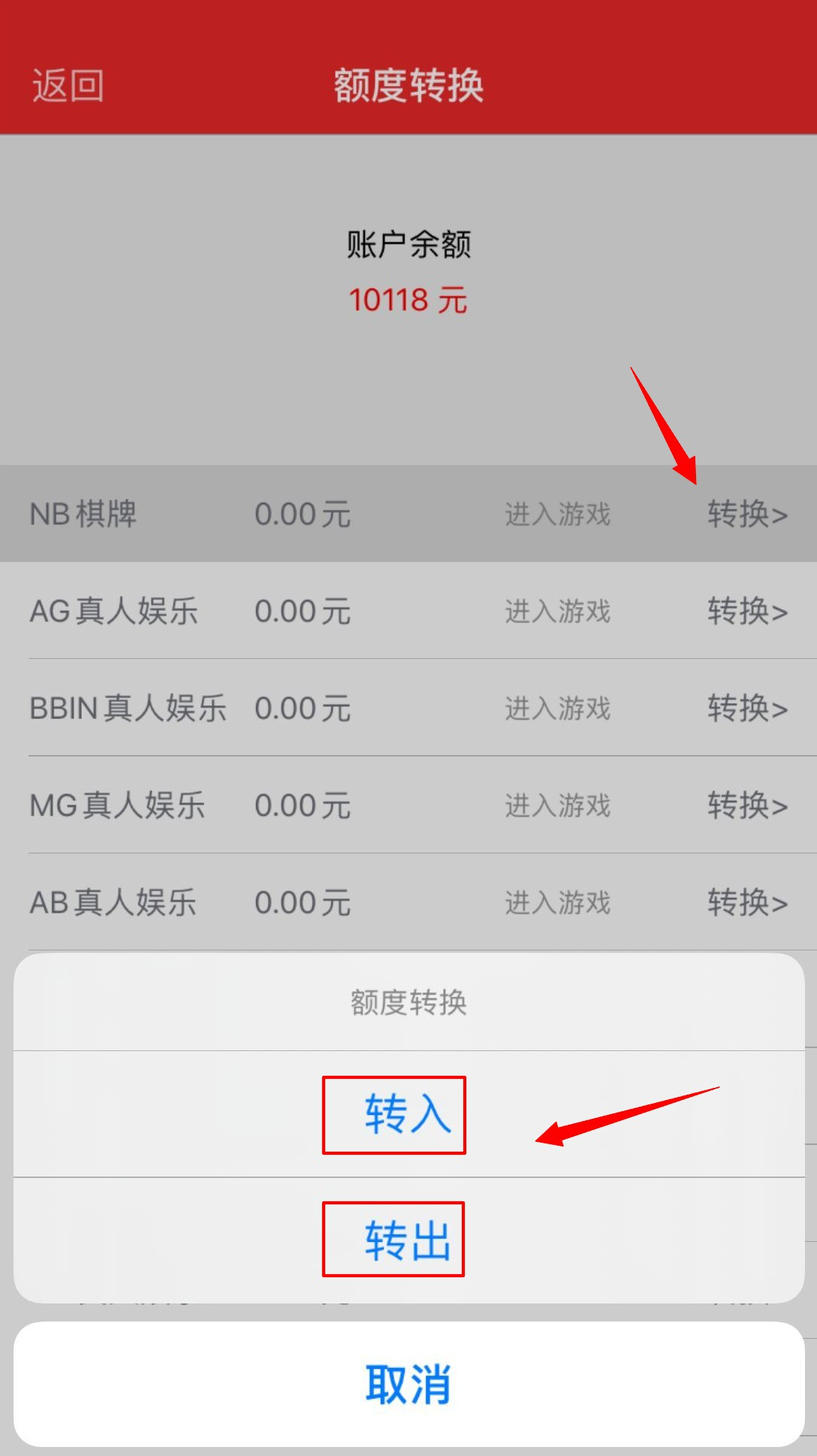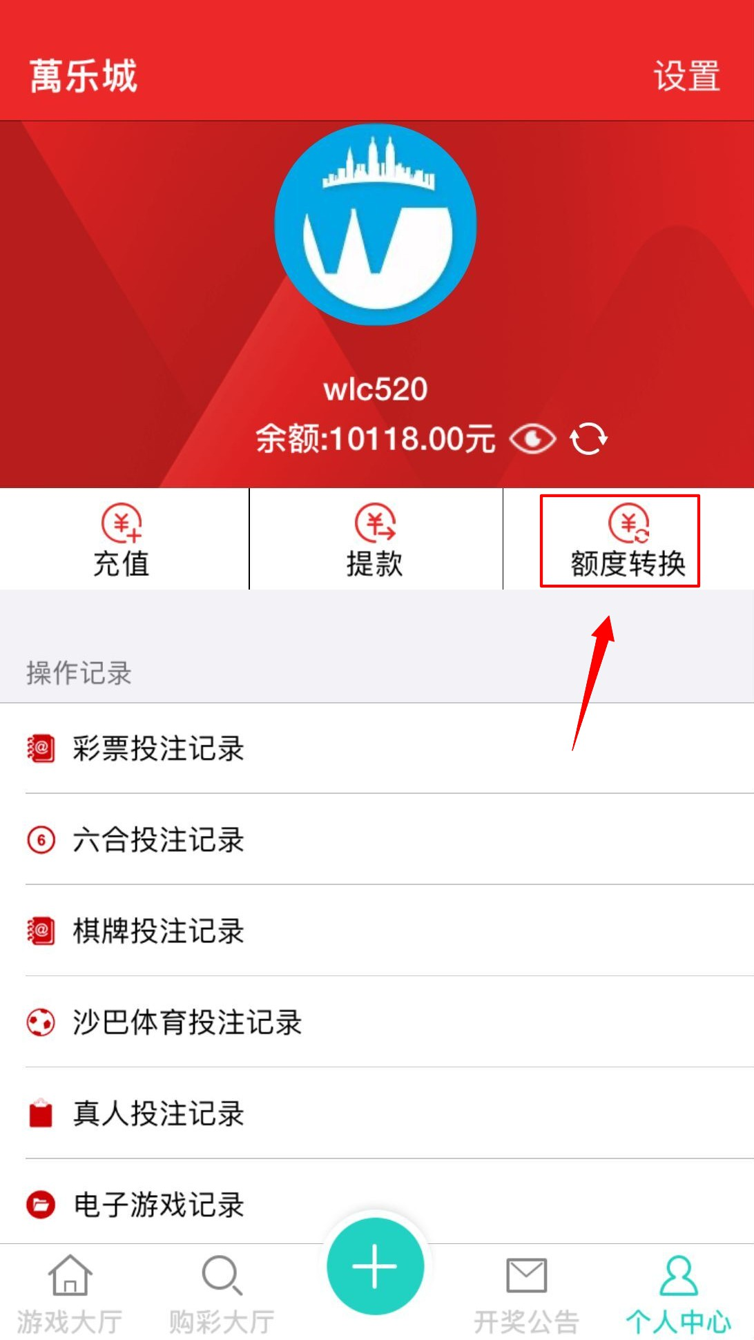 登录会员帐号后,点击会员导航条上的【额度转换】